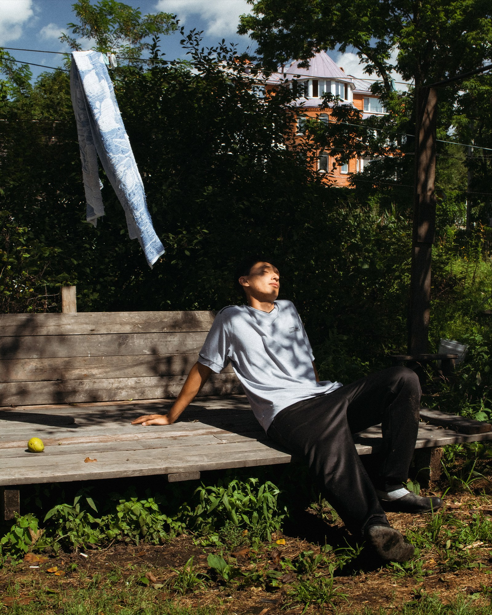 🌞 палящее зенитное солнце — жёсткие тени, где малейший поворот головы убивает кадр.